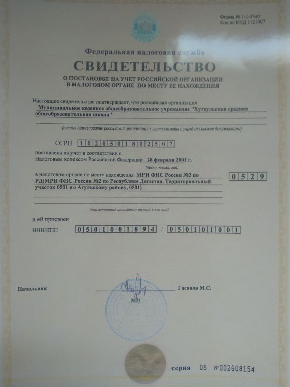 Полное наименование образовательной организации* Муниципальное казенное общеобразовательное учреждение "Хутхульская средняя общеобразовательная школа"